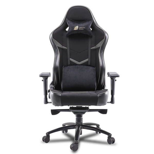 Refurbished Green Soul ( MonsterUlt_BlackGrey_GS734U) T Multi-Functional Ergonomic Chair with Premium Spandex & PU Leather Fabric, Adjustable Neck & Lumbar Pillow, 4D Adjustable Armrests & Heavy Duty Metal Base (Black & Grey)